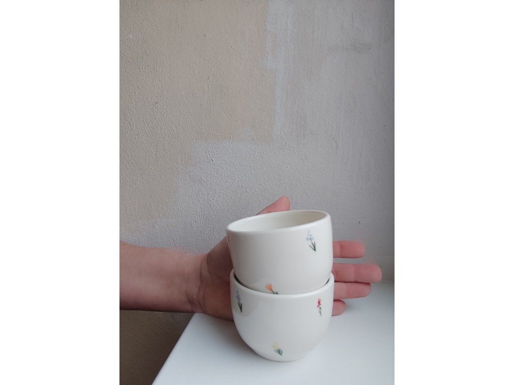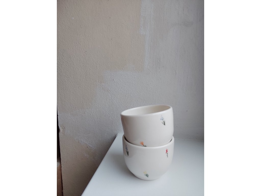 Herbář hrnek bez ucha, o objemu cca 100 ml.