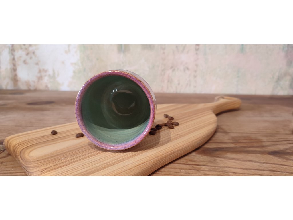 Krásná glazura na krásném hrnečku. Vně zelená glazura.