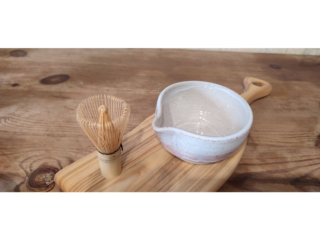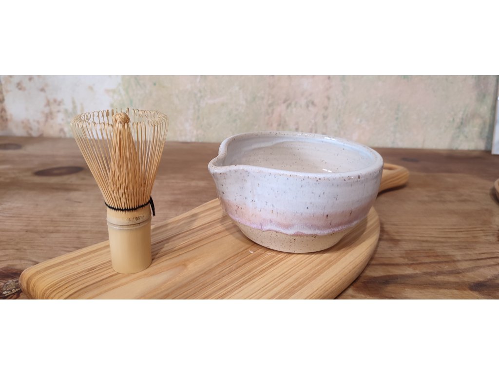 Matcha miska s bílo růžovou glazurou, pro přípravu matcha nápoje.